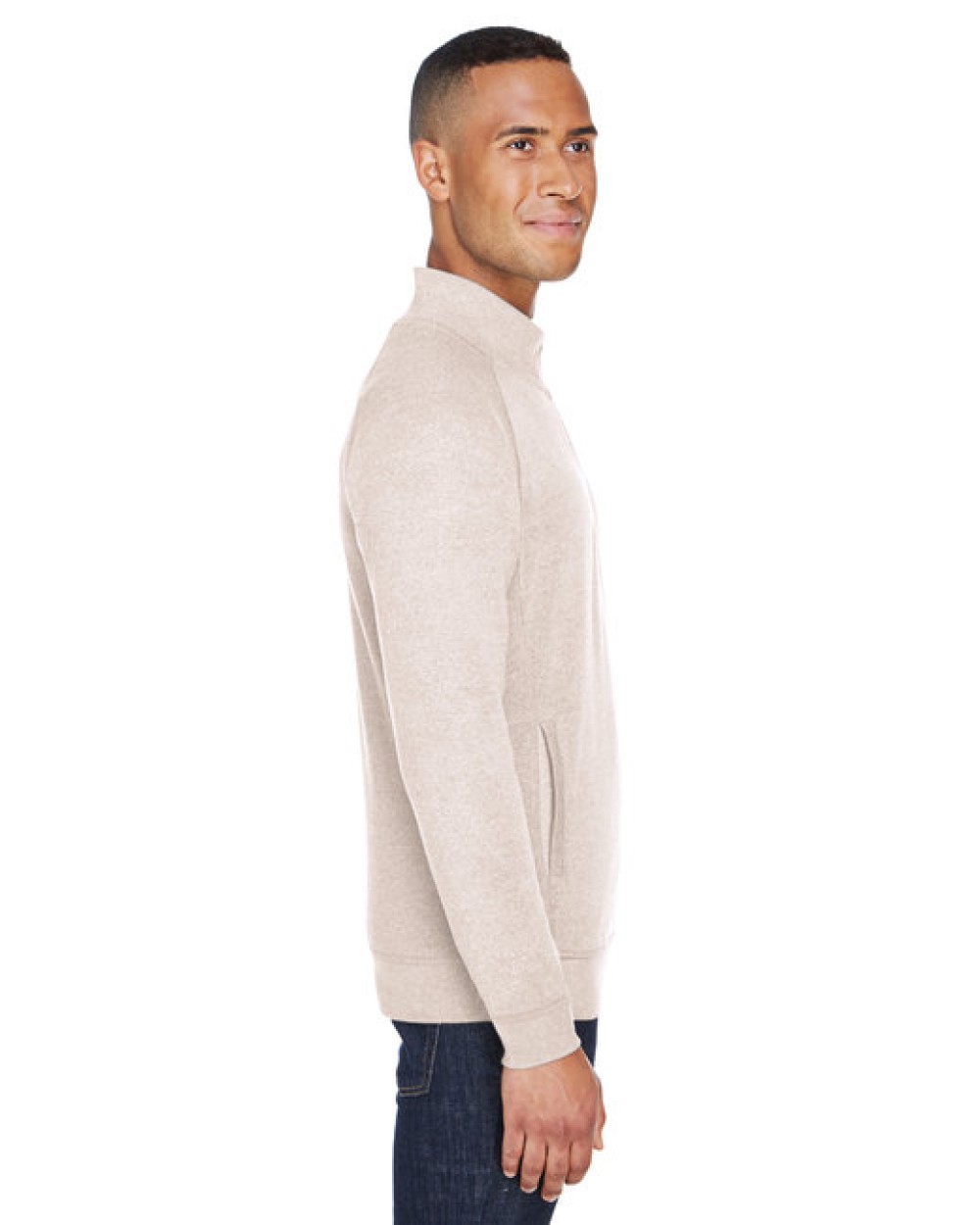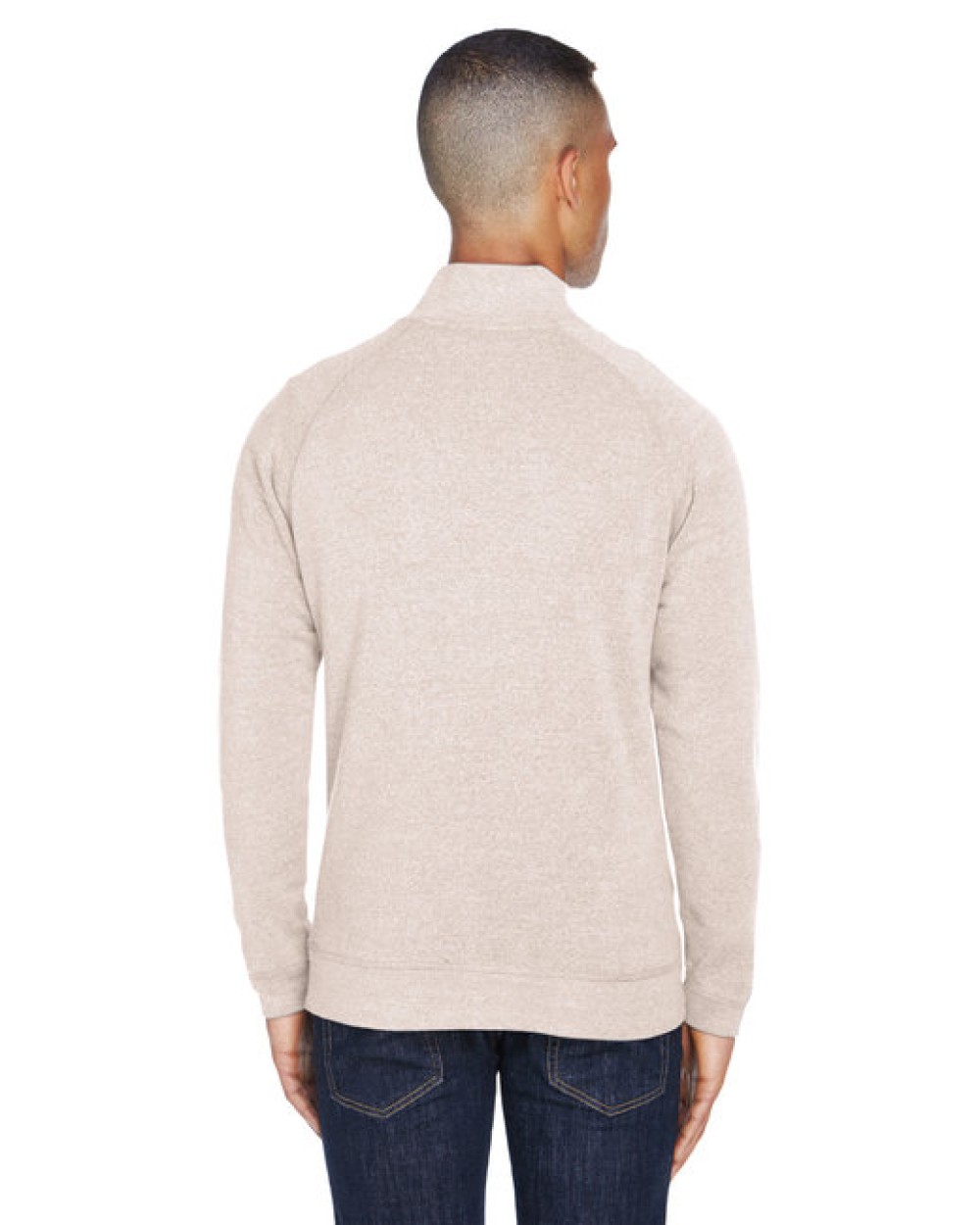 7.5 oz., 55% cotton, 39% polyester, 6% rayon triblend fleece; 1/4-zip placket with off-white zipper tape; Rib collar, cuffs, and waist; Welt pockets;