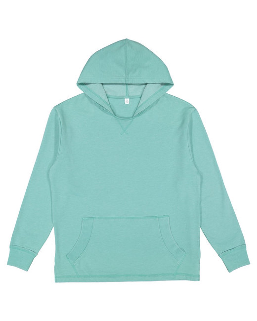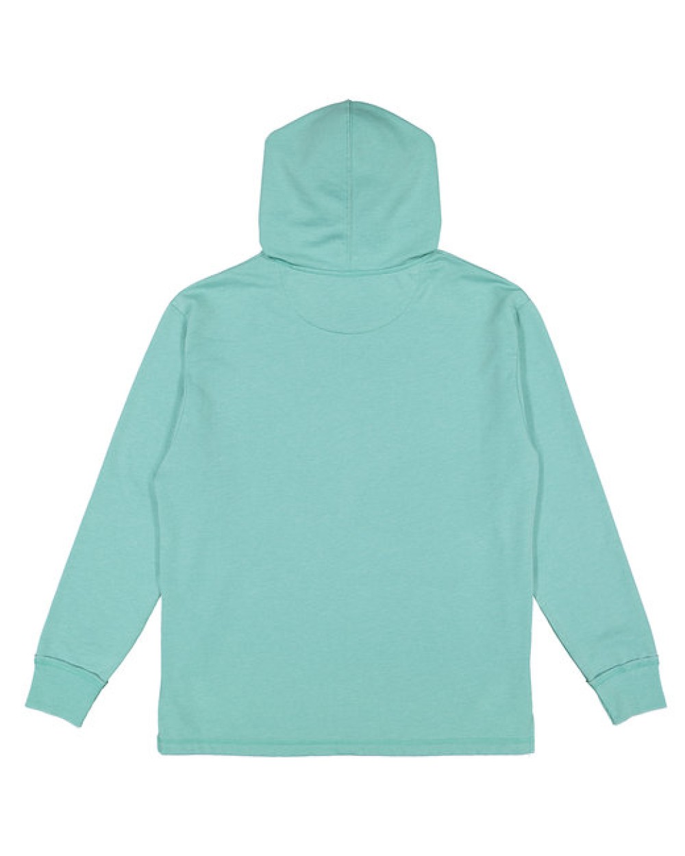6.5 oz., 60% polyester, 40% carded cotton 2-end fleece (pre-wash); Vintage washed fabric; Fashion rib v-notch; 2-piece hood; Fashion rib cuffs with raw edge; Fashion rib pocket detail; Coverstitched bottom hem and cuffs; Open bottom with raw edge & side vents; Flatlocked side seams; Back locker patch; EasyTearô label; the LA T vintage wash collection achieves its authentic look and feels through special dye and mineral wash processes, which creates unique and natural variances in texture, distress, and shade. These are intentional and are not considered defective;