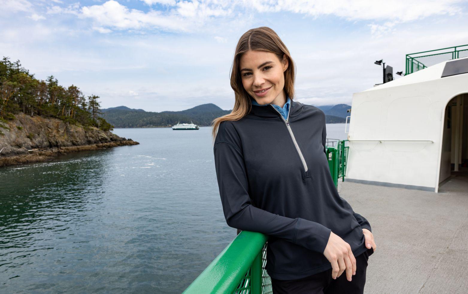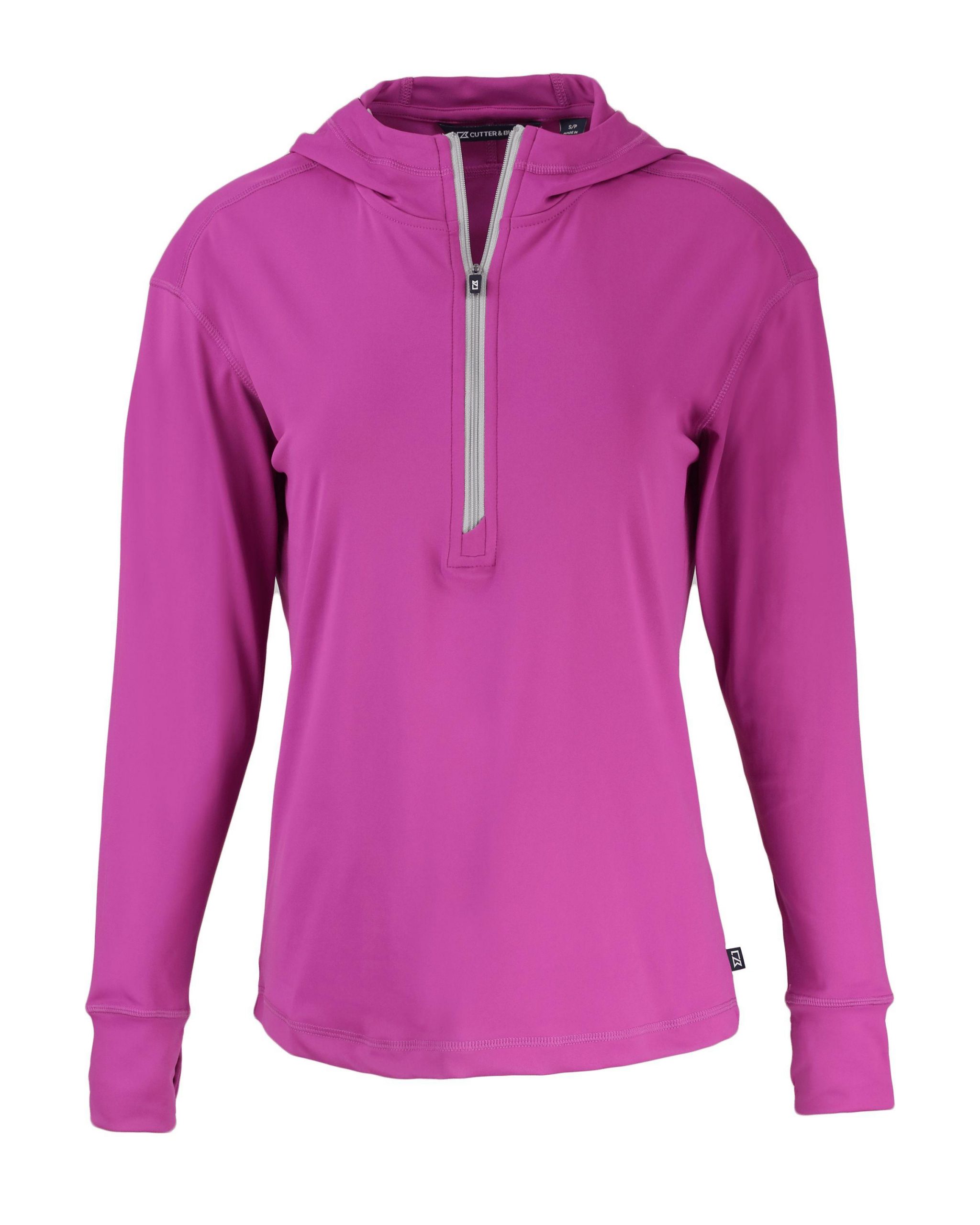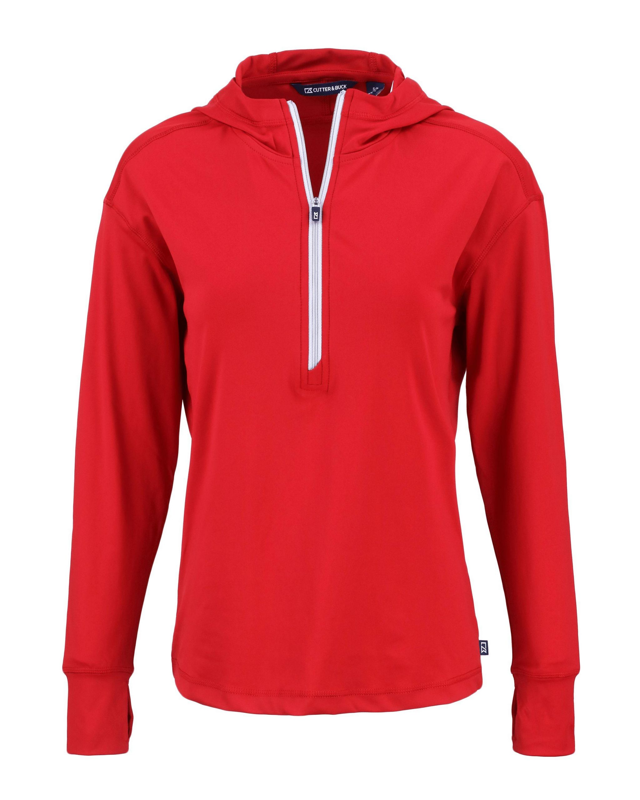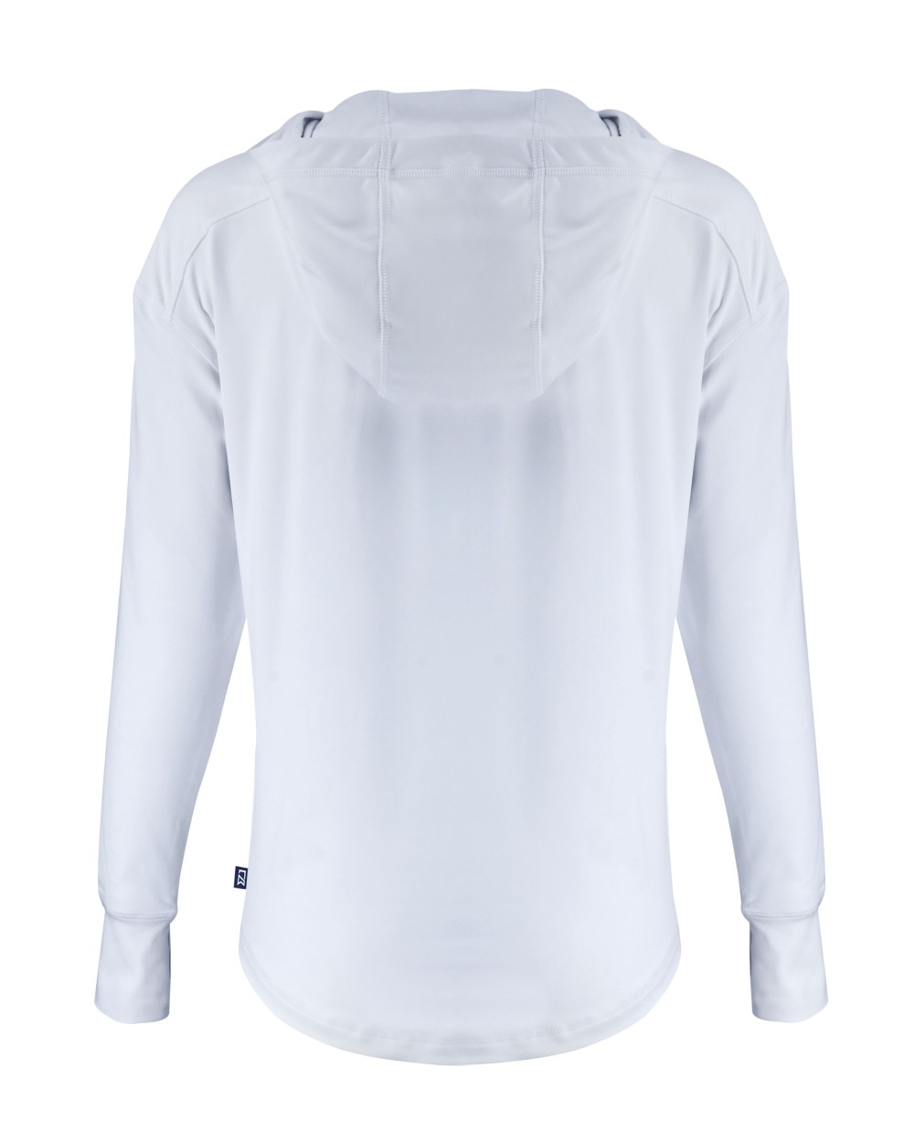 The iconic Daybreak Eco Recycled Half Zip Hoodie is engineered for exceptional versatility, designed as your favorite sustainable womens half-zip lightweight layer for your active life: work, golf, tennis, travel, or any everyday adventure. Our ultra-lightweight, high quality, moisture wicking, certified eco-friendly recycled polyester is blended with spandex to provide four-way stretch, a cooling effect, and UPF sun protection, resulting in the most versatile, sustainable, and comfortable top for you and the planet.