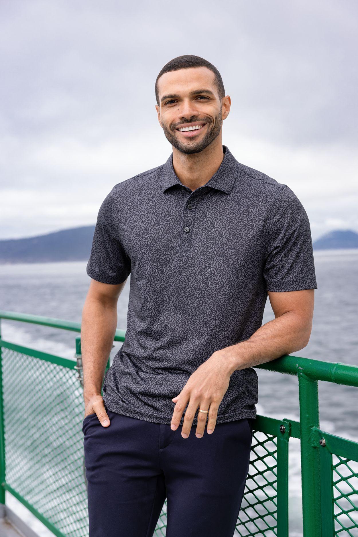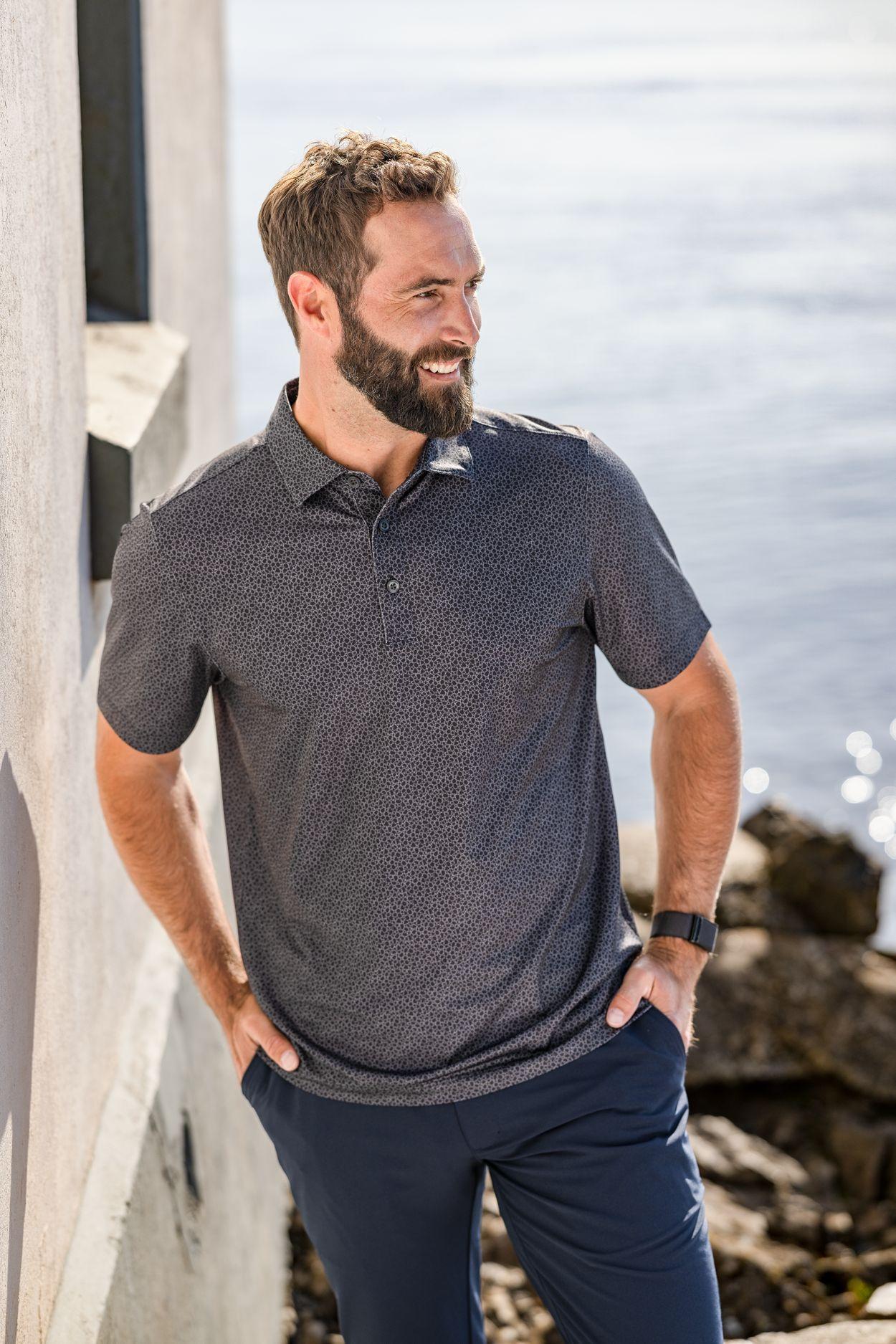 The iconic short sleeve Pike Eco Pebble Print Recycled Polo is engineered with 4-way stretch for exceptional versatility, designed to be your favorite sustainable super smooth men’s short sleeve polo shirt for golf, the clubhouse, the office, travel, work from home, or wherever adventure takes you. Supremely stretchy with a sophisticated and sporty look, the moisture wicking, high quality Pike Eco Pebble Print polo is a perfect blend of UPF sun protection certified eco-friendly polyester and spandex, resulting in the most versatile, sustainable and comfortable polo for you and the planet.