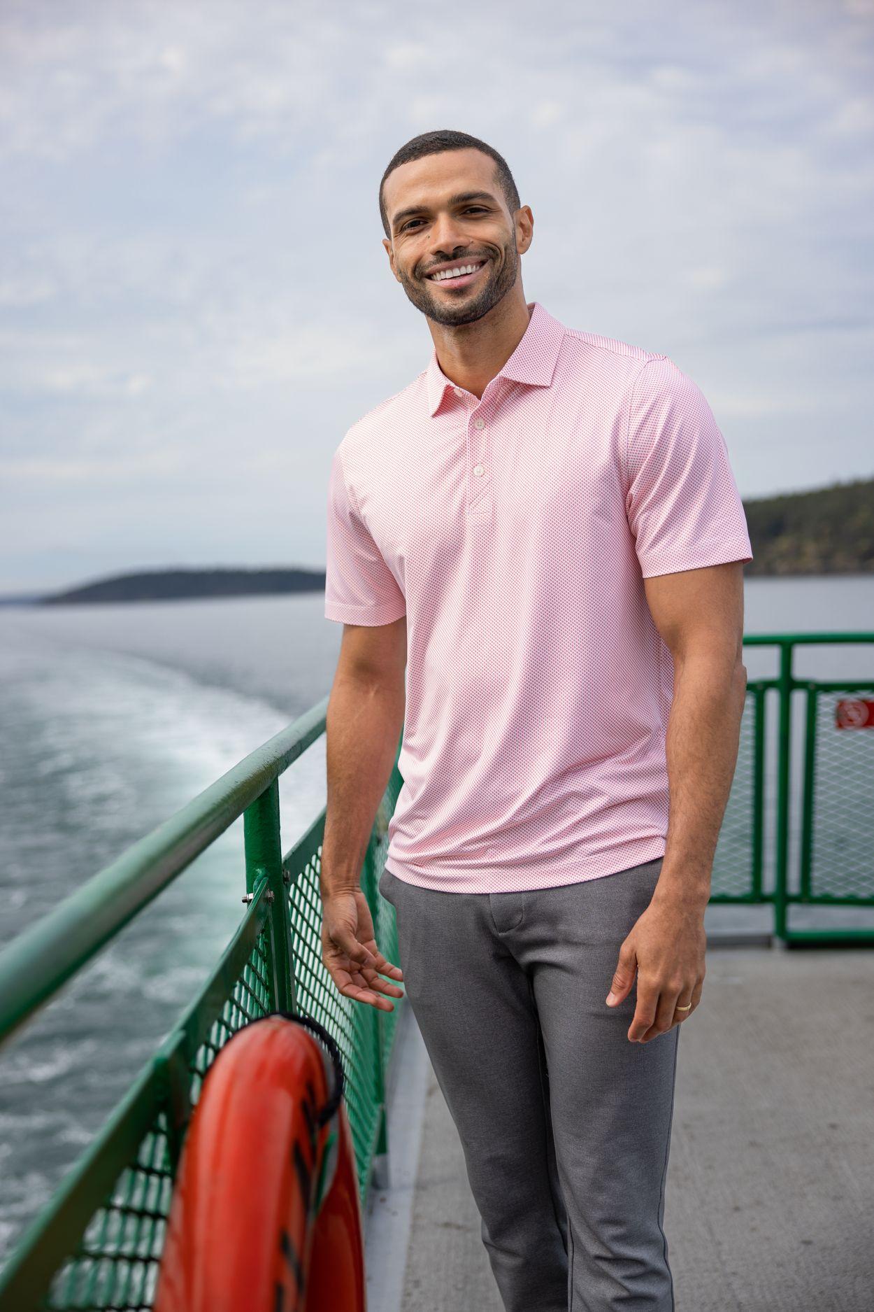 The iconic short sleeve Pike Eco Symmetry Print Recycled Big & Tall Polo is engineered with 4-way stretch for exceptional versatility, designed to be your favorite sustainable super smooth men’s short sleeve polo shirt for golf, the clubhouse, the office, travel, work from home, or wherever adventure takes you. Supremely stretchy with a sophisticated and sporty look, the moisture wicking, high quality Pike Eco Symmetry Print Big & Tall polo is a perfect blend of UPF sun protection certified eco-friendly polyester and spandex, resulting in the most versatile, sustainable and comfortable polo for you and the planet.