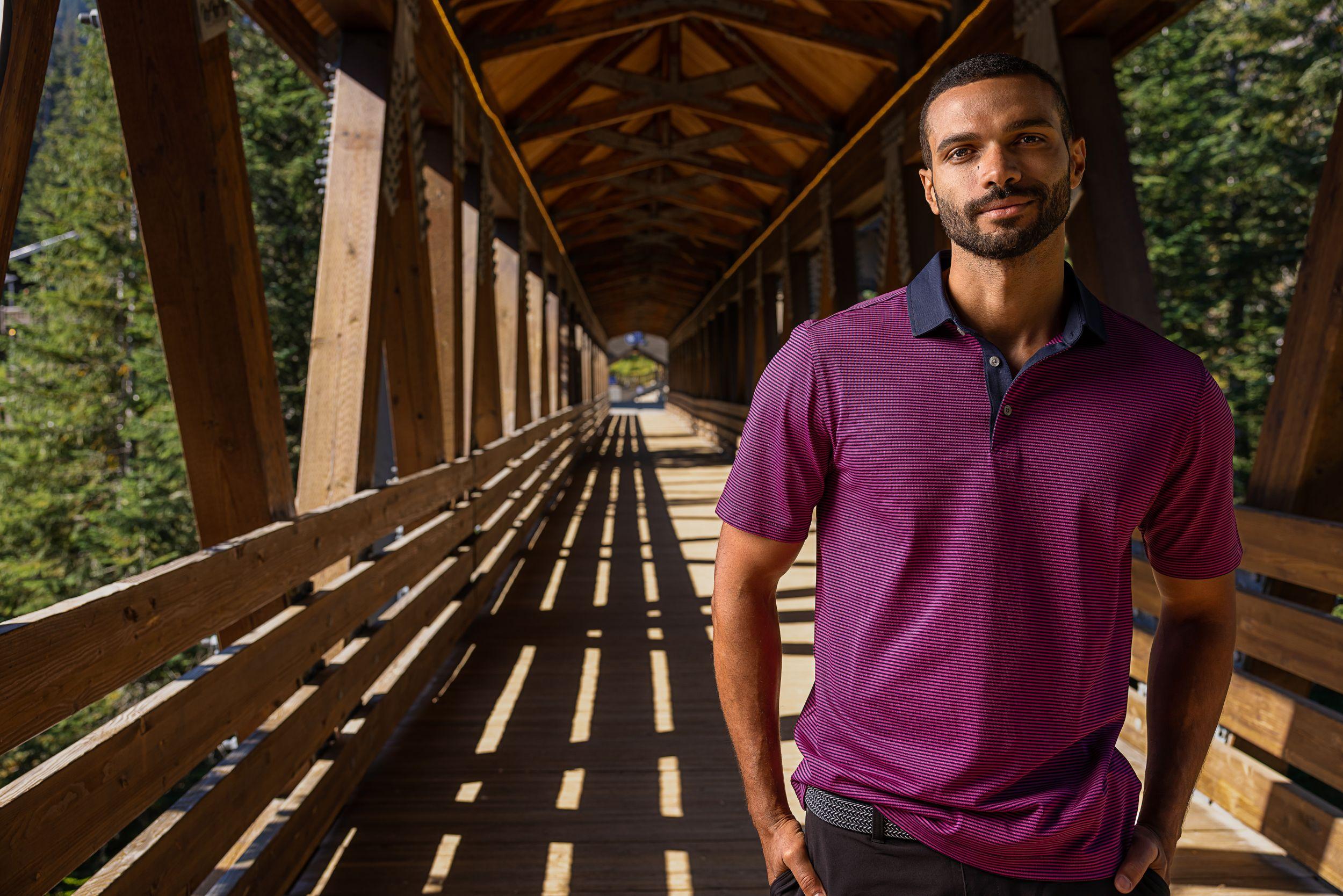 The iconic Virtue Eco Pique Micro Stripe Mens Polo is engineered for exceptional versatility, designed as your favorite sustainable mens quarter zip for golf, the office, WFH, travel, recharging, and for a night out. Ultra-lightweight, high quality, certified eco-friendly recycled drytec polyester is blended with spandex for stretch, a cooling effect, and UPF sun protection, resulting in the most versatile, sustainable, and comfortable stripe polo for you and the planet.
