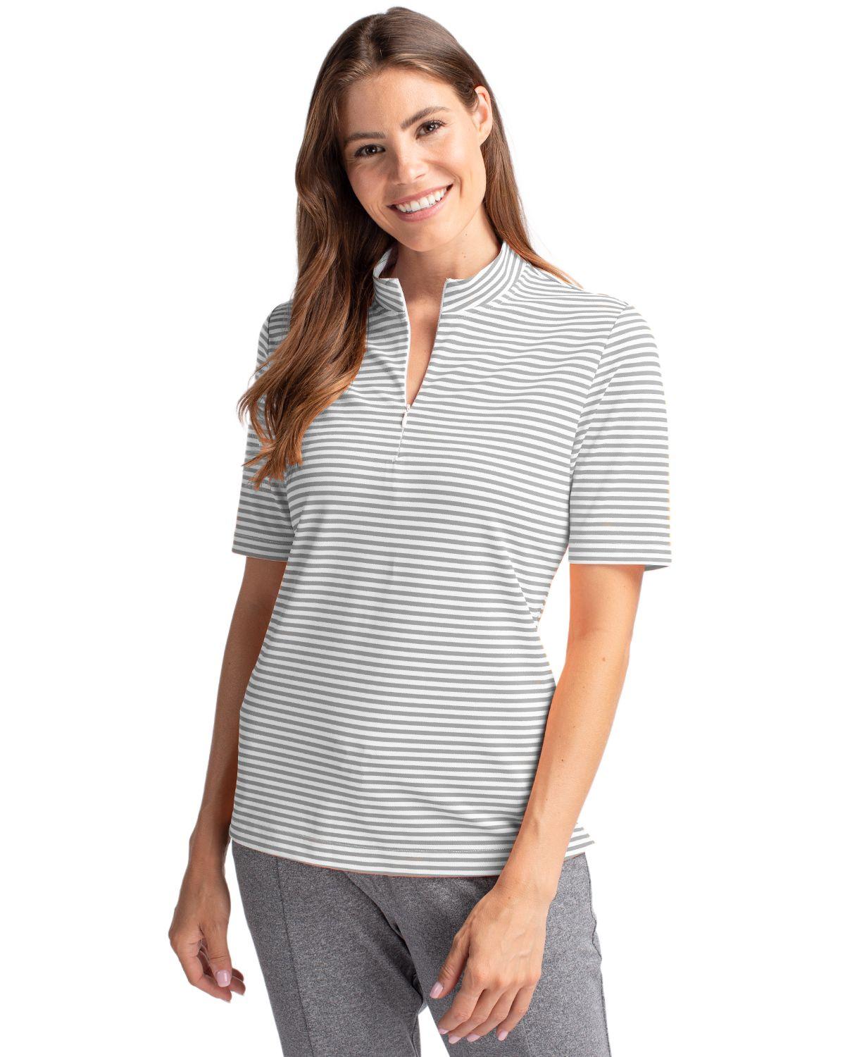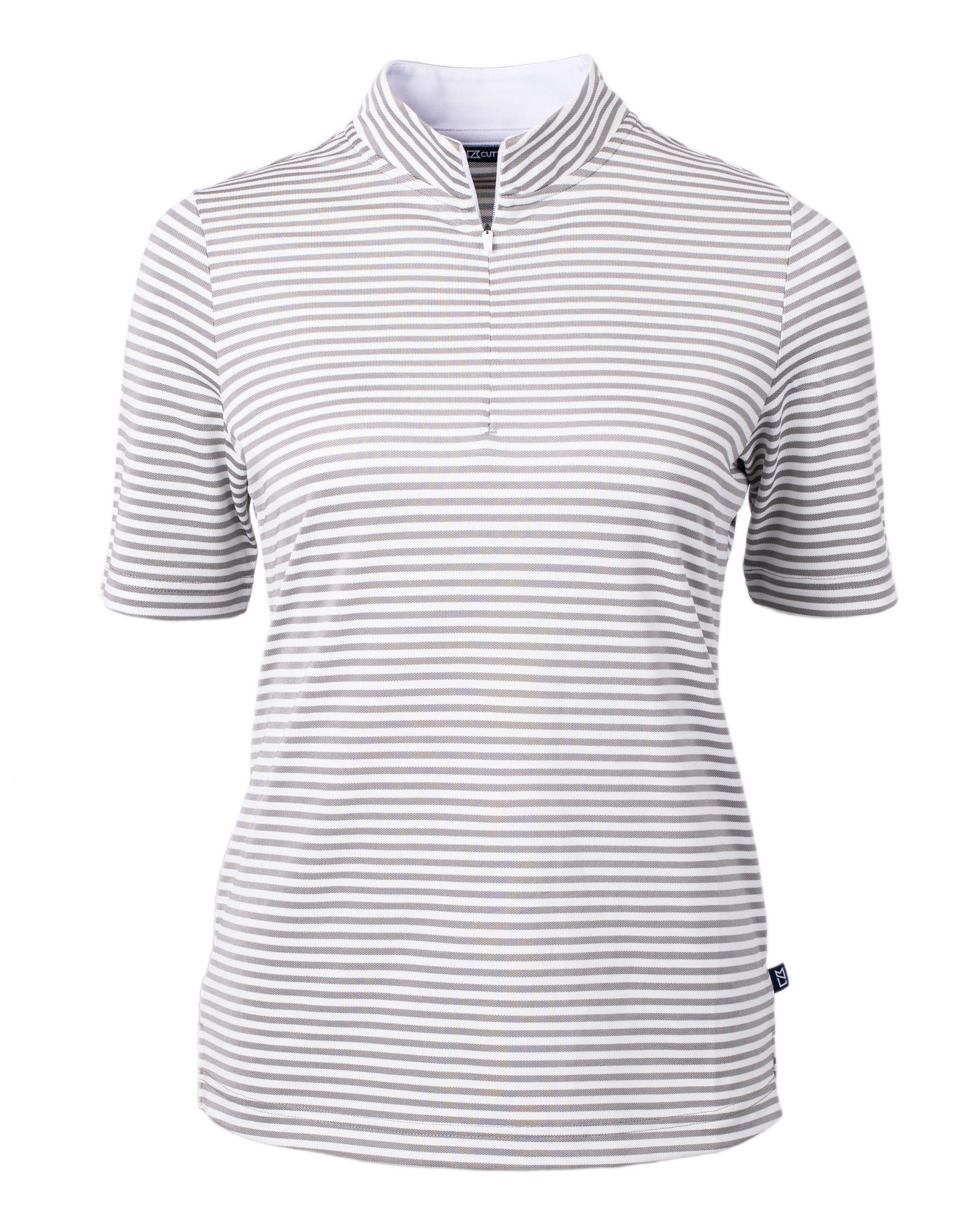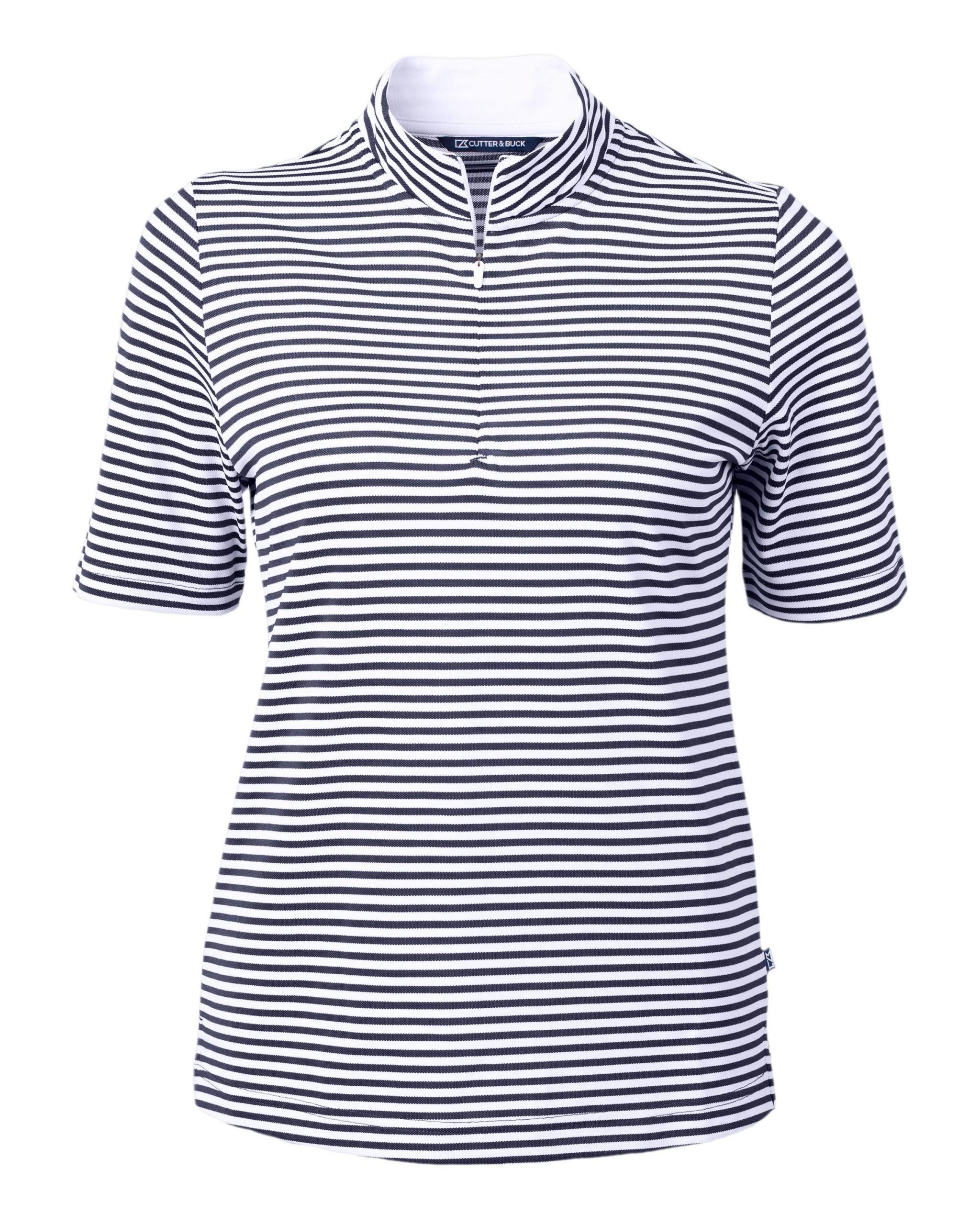 The iconic Virtue Eco Pique Stripe is engineered for exceptional versatility, designed to be your favorite sustainable womens striped top for golf, office, WFH, travel, recharging, and for a night out. High quality certified eco-friendly recycled polyester is blended with drytec polyester and spandex for stretch, a cooling effect, and UPF sun protection, resulting in a versatile, sustainable, and comfortable striped top for you and the planet.
