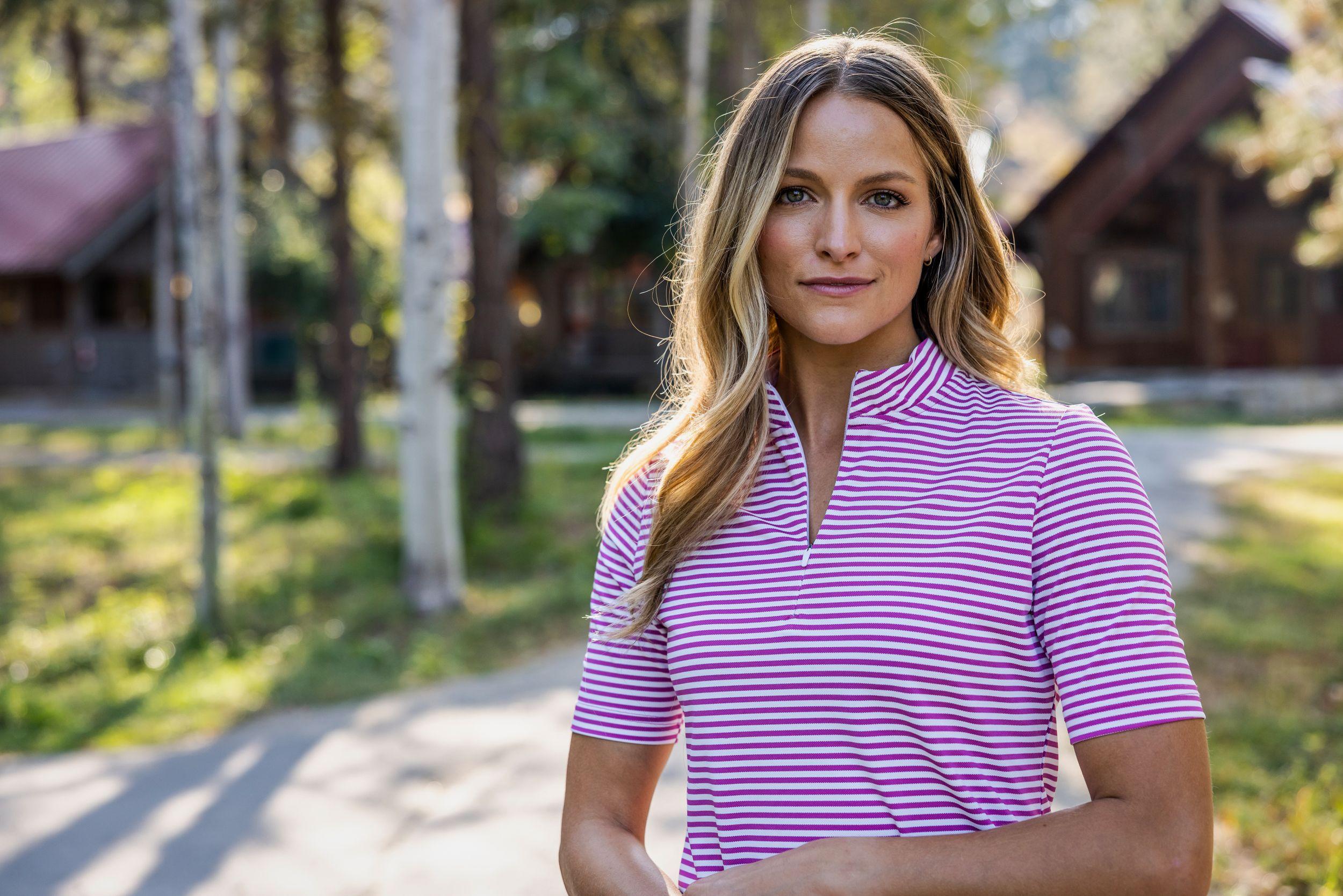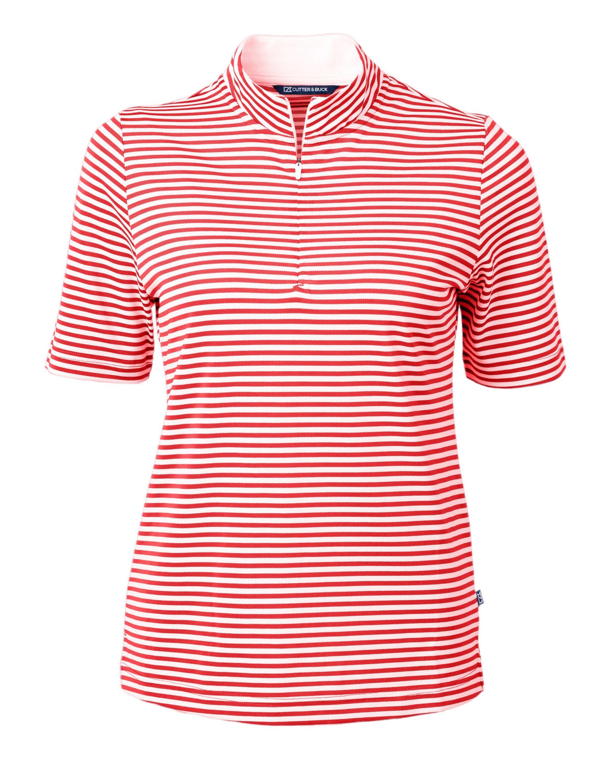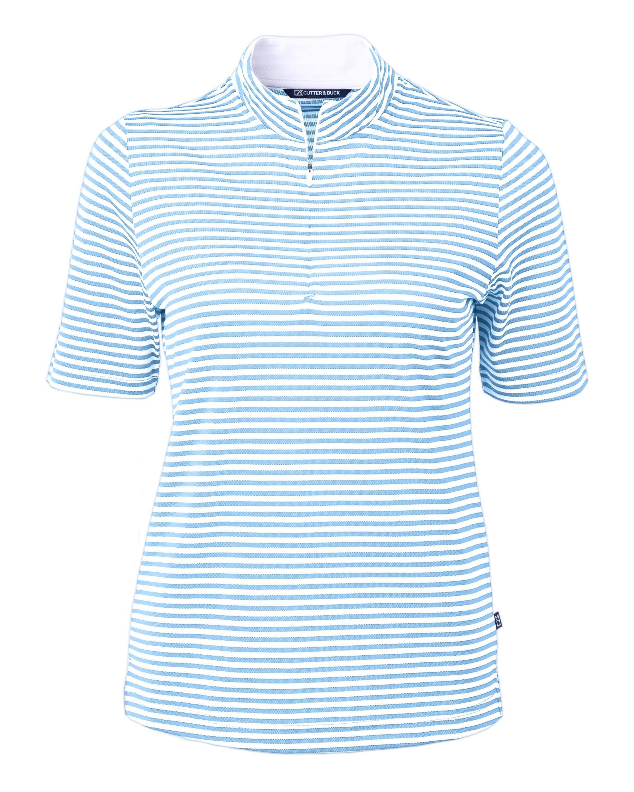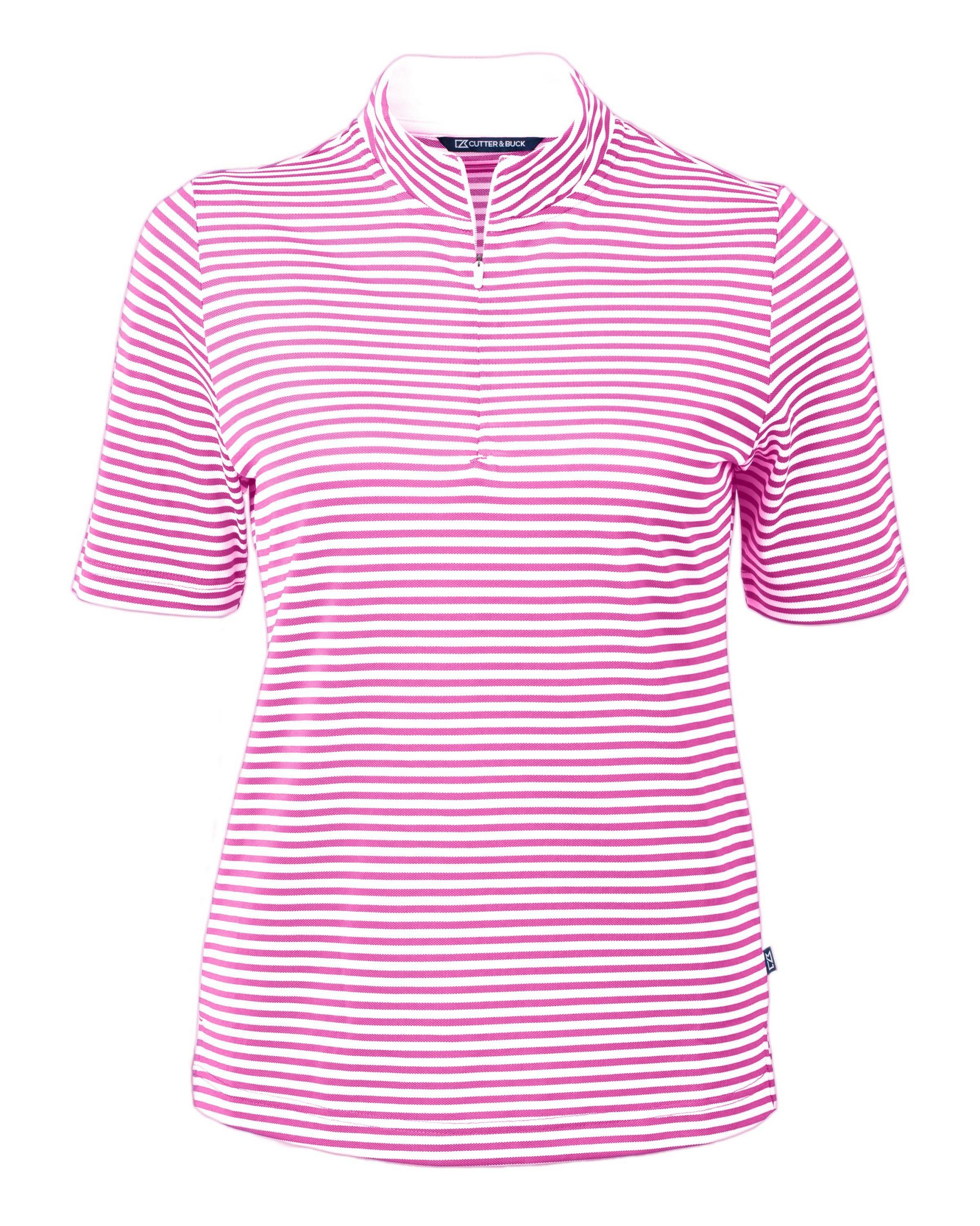 The iconic Virtue Eco Pique Stripe is engineered for exceptional versatility, designed to be your favorite sustainable womens striped top for golf, office, WFH, travel, recharging, and for a night out. High quality certified eco-friendly recycled polyester is blended with drytec polyester and spandex for stretch, a cooling effect, and UPF sun protection, resulting in a versatile, sustainable, and comfortable striped top for you and the planet.