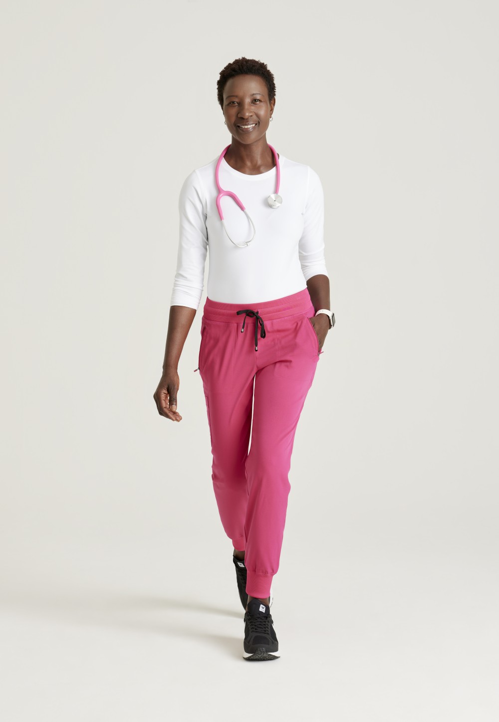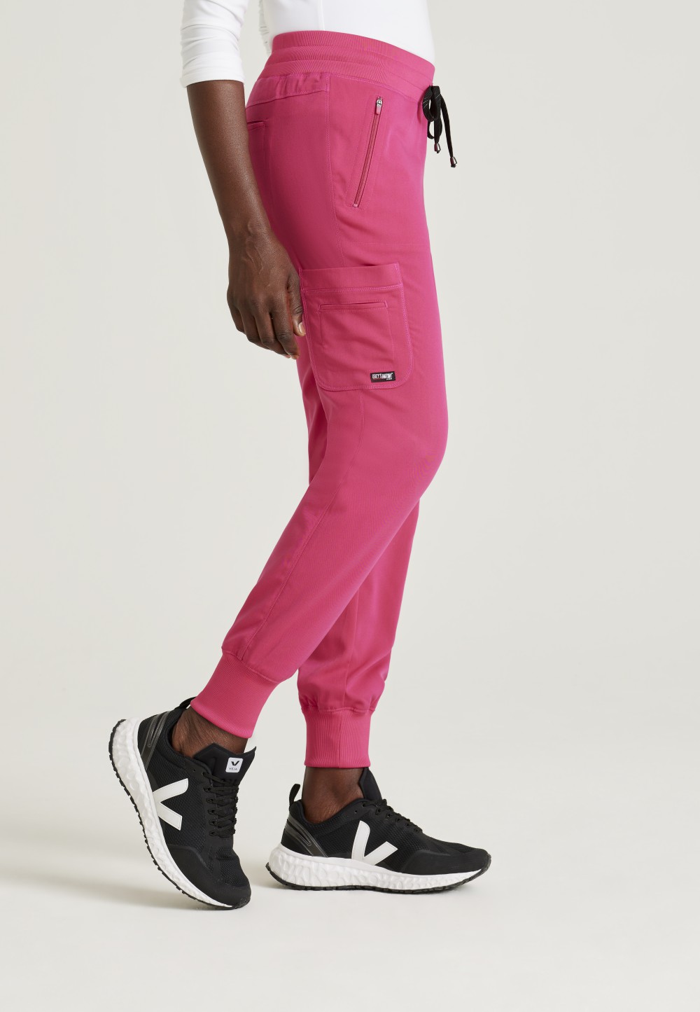 Fast-paced days call for these sporty Grey’s Anatomy joggers. The women’s scrub pants are made of soft spandex-stretch fabric that wicks moisture and lets you move freely. The five-pocket design includes front zip pockets to keep your essentials close.Machine wash cold with like colors. Use non-chlorine bleach if necessary. Tumble dry low. Iron low.