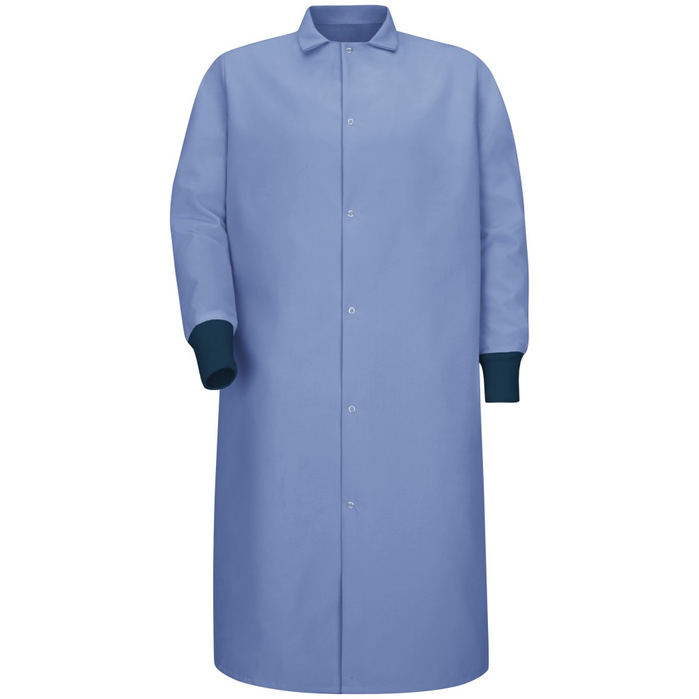 Gripper-Front Spun Polyester Pocketless Butcher Coat with Knit Cuffs