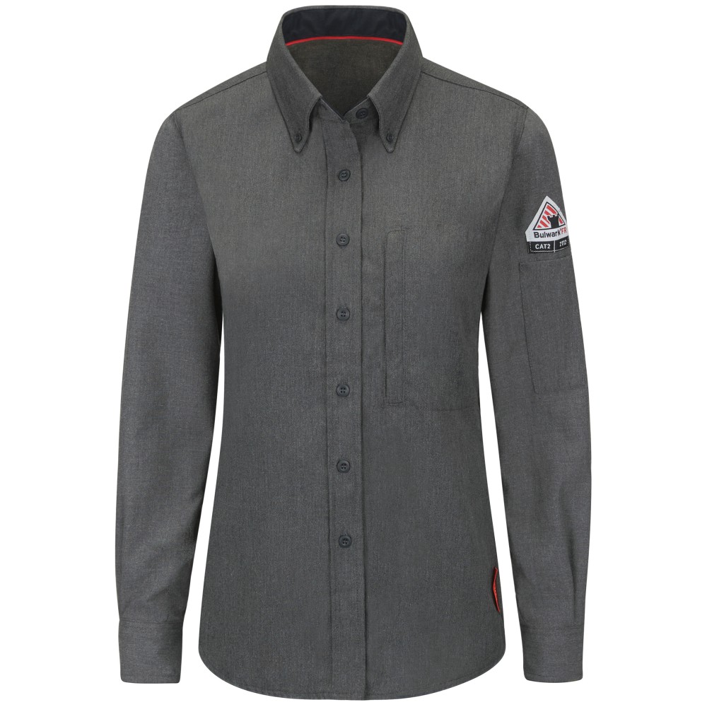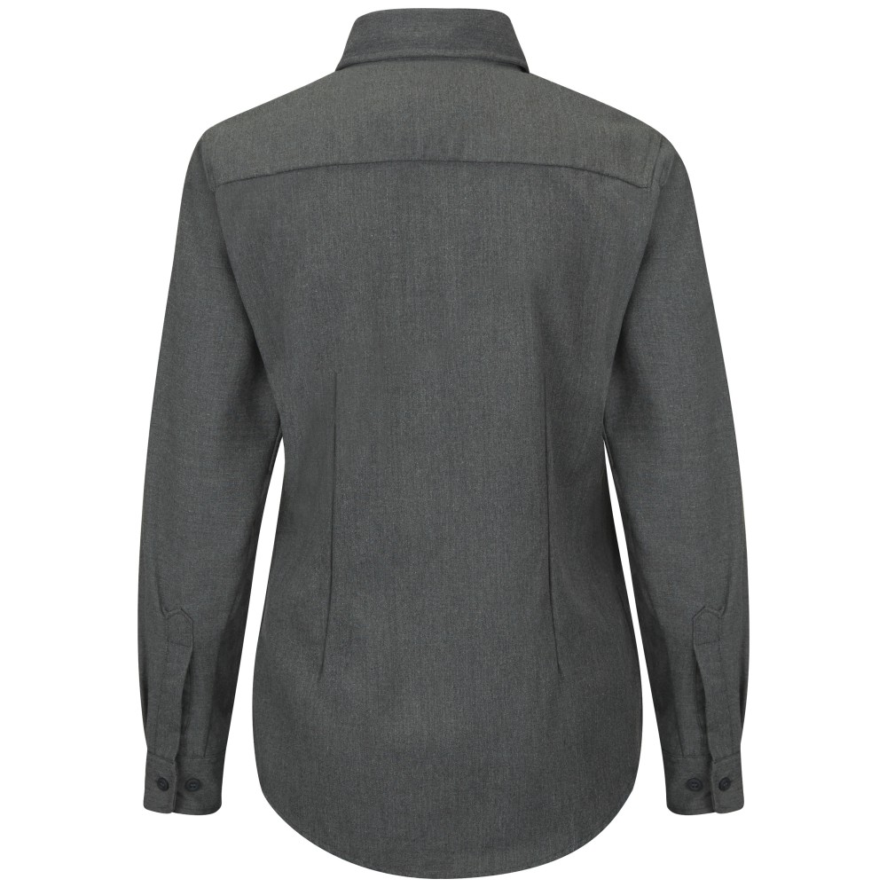 The newest advance in women’s FR workwear. Workwear that’s actually designed for a woman’s body. Made exclusively from TenCate Evolv™, this FR button-front shirt features mobility panels across the back and full arm gussets for increased movement and comfort. Princess seaming gives this shirt a uniquely feminine fit and shape, with hidden pockets on each sleeve and exterior 2112 labels clearly visible.