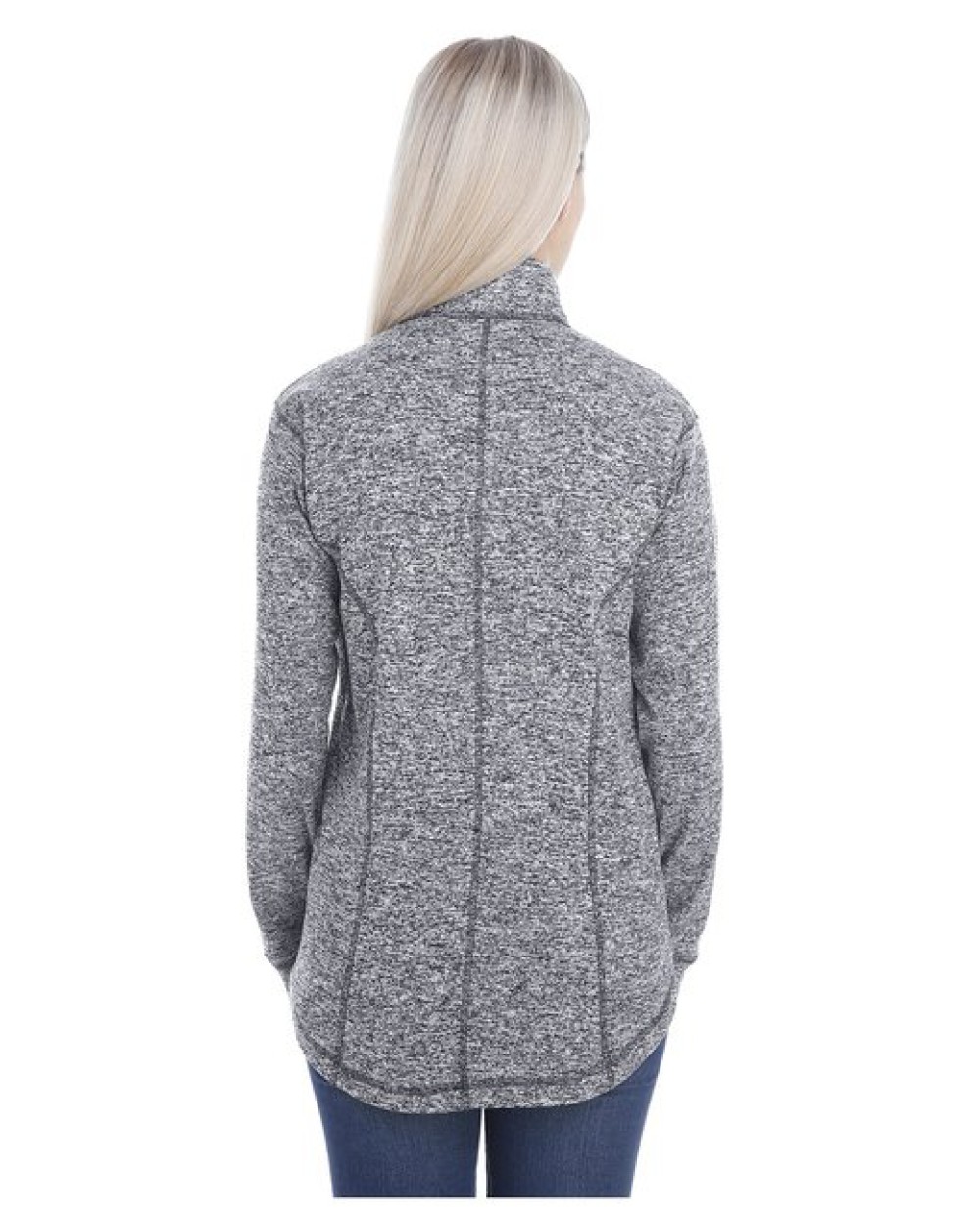 7 oz., 100% spun polyester fleck fleece; Contrast zipper and front pouch pocket; Thumbholes on cuffs;
