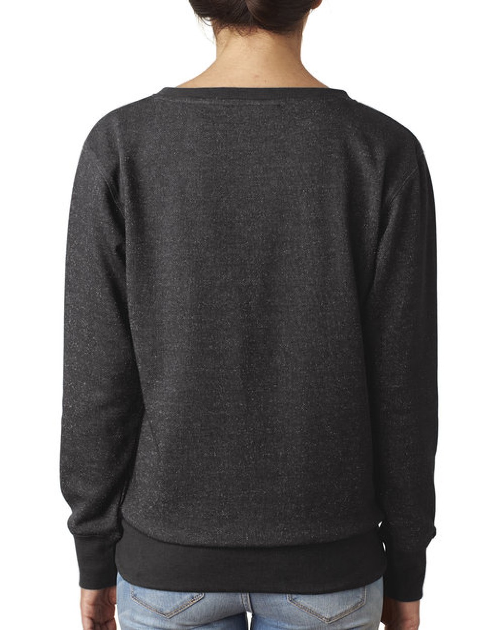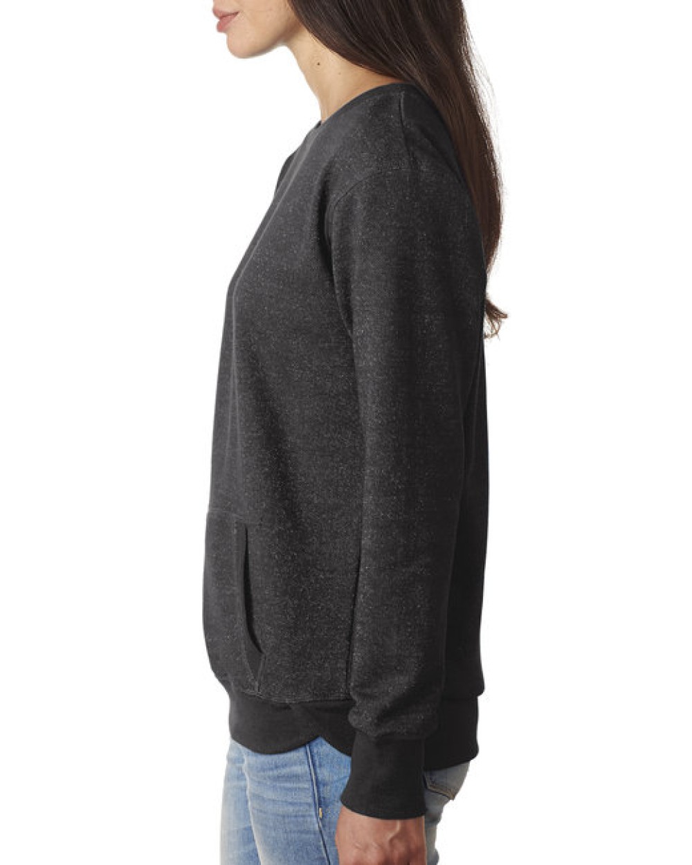 8 oz., 55% cotton, 25% metallic yarn, 20% polyester French terry; Glitter knit and cover-stitched throughout; 2×1 rib-knit cuffs; Waistband and pocket openings; Extended back length;