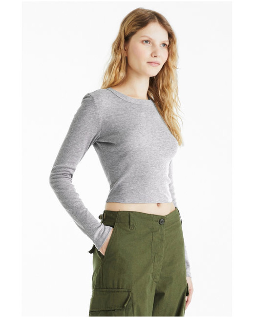 Ladies’ Micro Ribbed Long Sleeve Baby Tee