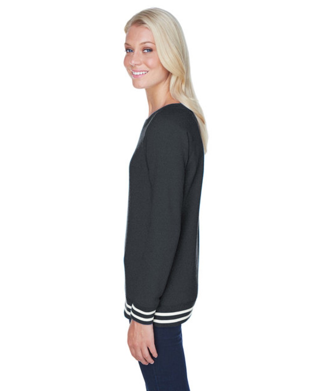 6.5 oz., 60% cotton, 40% polyester singledyed sueded fleece; 1×1 yarndyed cuffs and waist; 1×1 rib dyed-to-match collar;