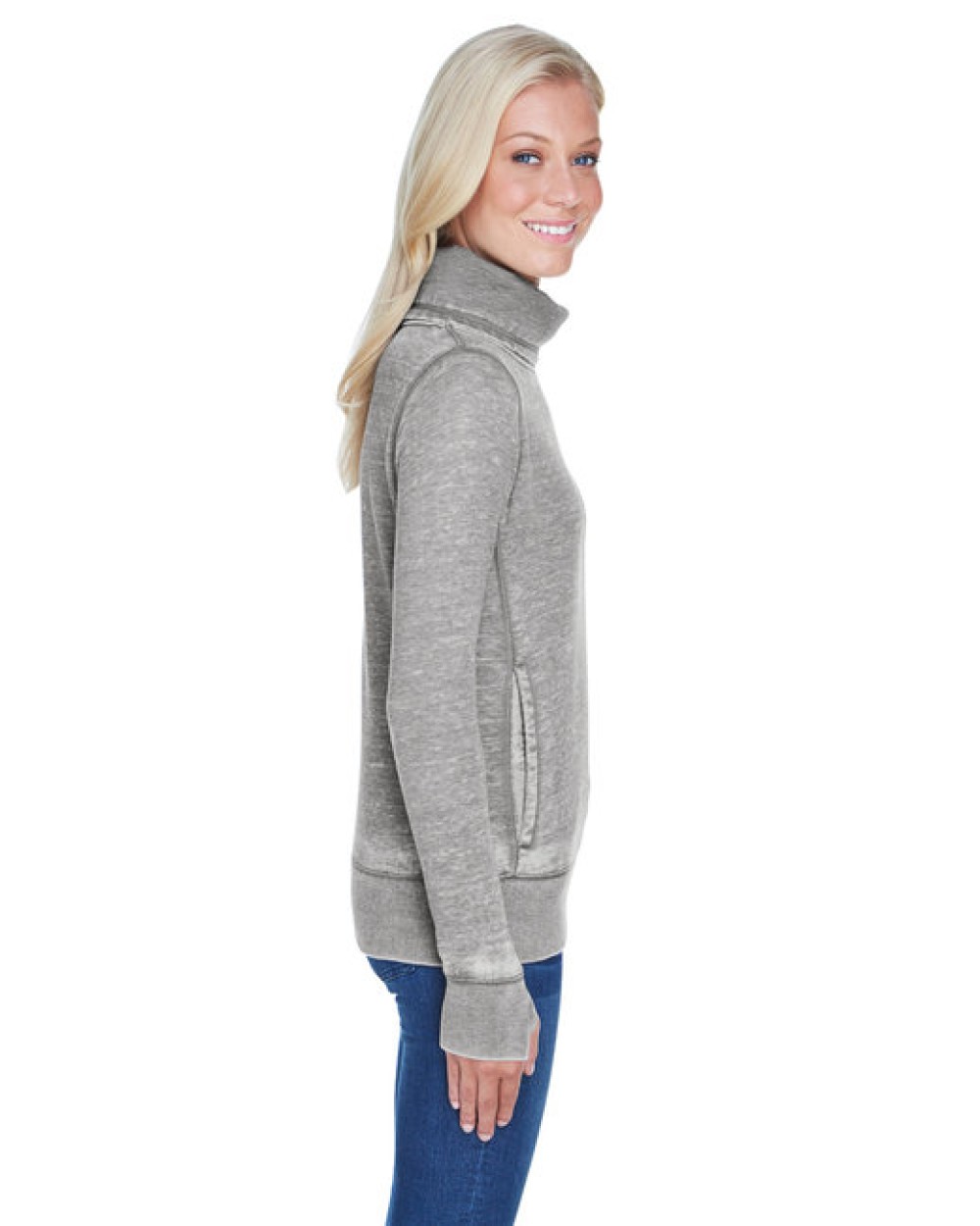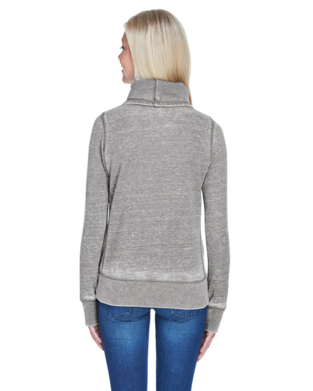 7 oz., 55% cotton, 45% polyester burnout; Acid-washed with silicone finish; Self fabric cowl neck; Welt pockets along side gusset; 2×1 rib cuffs with thumbholes;