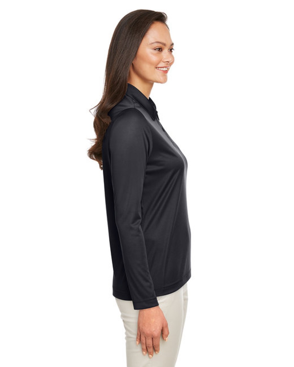 3.5 oz/yd2 / 130 gsm, 100% polyester interlock; Moisture-wicking and UV protection performance; Cationic dyes for superior brightness and color fastness; Two-button placket; Integrated collar stays; Dyed-to-match buttons; Tear away label;