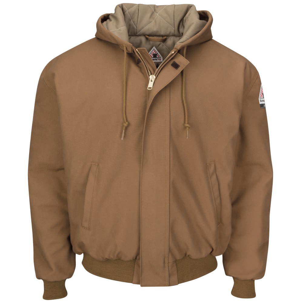 This heavyweight CAT 4 FR/AR brown duck jacket has quilted insulation that offers extra warmth for cold days on the job. It’s designed with special features to keep you warm and safe in the field, like a three-piece hood and knit cuffs and waistband that helps the jacket stay in place and prevents exposed skin.