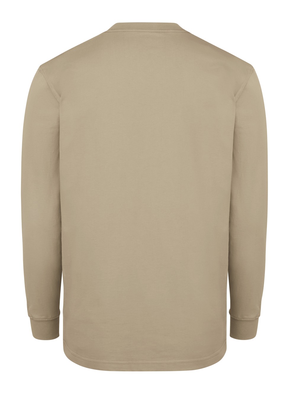 Whether you’re wearing it as a shirt or an undershirt, the roomy design and cotton jersey construction of Dickies’ Long Sleeve Traditional Heavyweight Crew Neck Tee is a best seller that will keep you comfortable all day. The long tail keeps you covered in the back for anything—so you can wear on or off the job—while the chest pocket with pencil divider lets you store your must-have accessories.