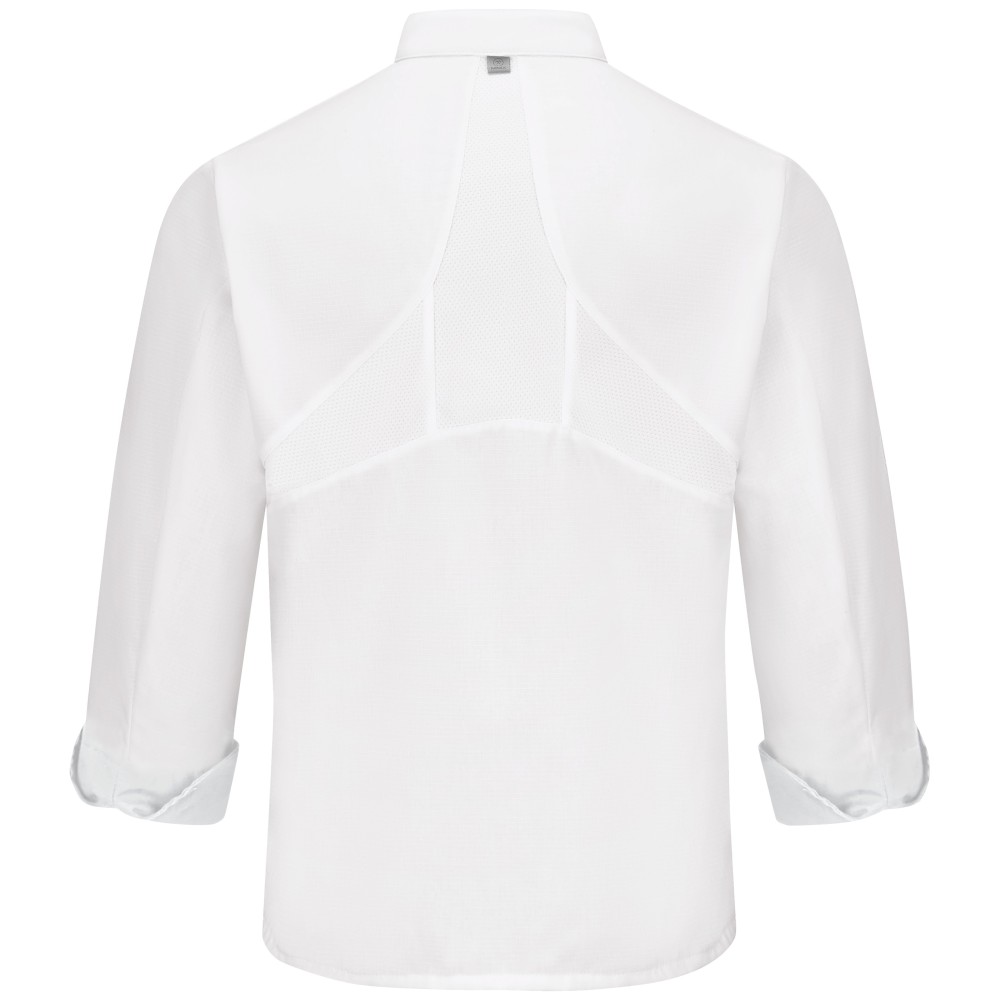 Bring classically handsome looks and the latest in fabric technology to work with our Ten Knot Button Chef Coat. It has built in and strategically placed MIMIXTM stretch panels for superior range of motion and mobility. This chef’s coat also comes with performance mesh for enhanced breathability in areas where you need it most. You won’t have to worry about stains either with fabric that has a stain-resistant Oilblok finish.