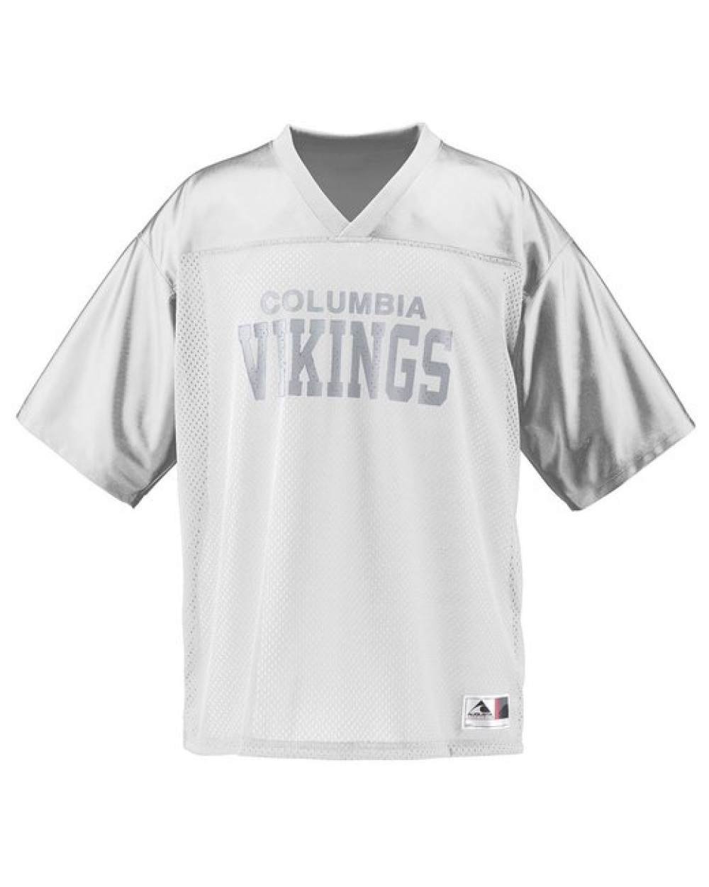 4.4 oz., 100% polyester tricot mesh; 2.2 oz., 100% polyester dazzle fabric yoke and sleeves; V-neck collar; Front and back yoke large enough for embellishment; Set-in sleeves for maximum mobility; Outside locker label; Double-needle hemmed sleeves and bottom; Not to be worn with pads;