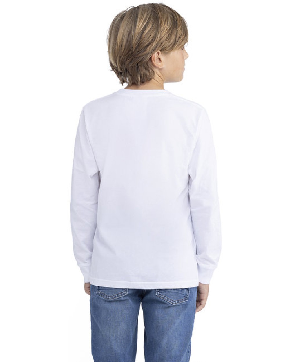 4.3 oz., 32 singles; 100% combed ring-spun cotton fine jersey; 1×1 baby rib-knit set-in collar and sleeve cuffs; Shoulder-to-shoulder binding; Side seamed; Tear away label; Next Level Apparel has a recycling program for all fabric waste collected from the cutting process. All fabric scraps are sent to a recycling company that cleans and processes them to be used for cushion filling, rugs, etc. To date, 24.3m pounds of fabric have been recycled.;