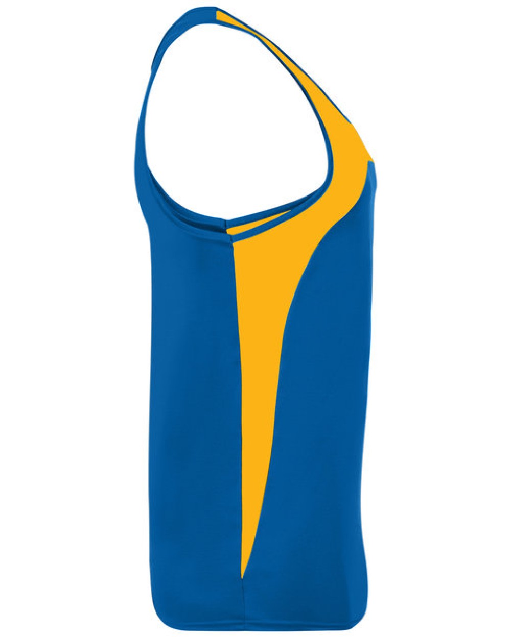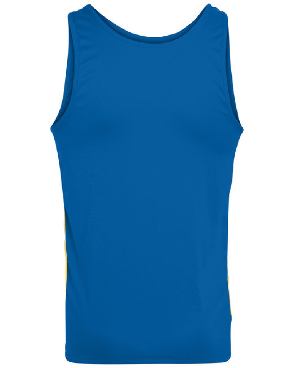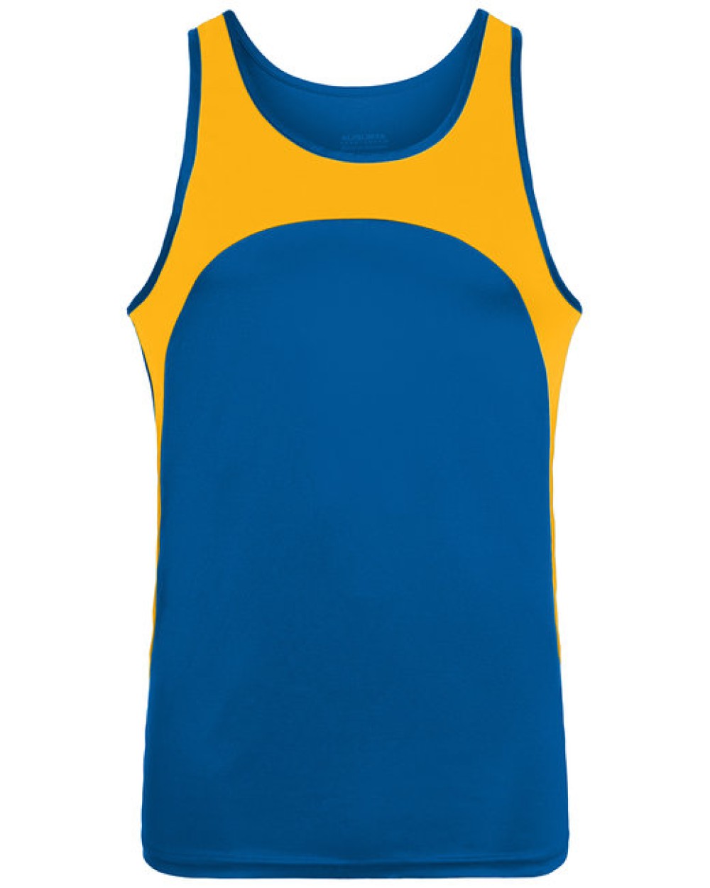 100% polyester wicking knit†; Moisture-wicking; Heat-seal label; Self-fabric binding at neck and armholes; Contrast color front inserts;