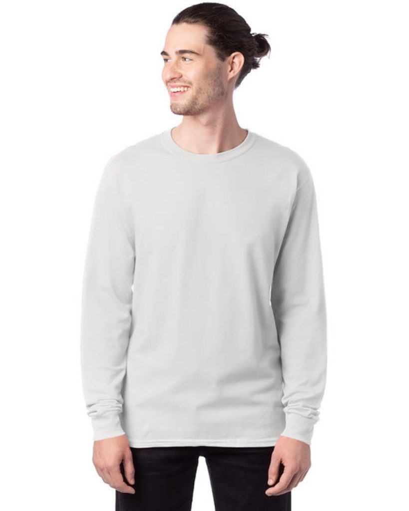 4.3 oz./yd2, 30/1’s fabric; 100% combed ring-spun cotton; Heather Grey is 90% cotton/ 10% polyester; 100% cotton thread on color White; Shoulder-to-shoulder tape and 7/8″ seamed collar; 1î double-needle sleeve…