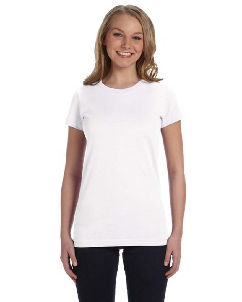 …cotton thread; Topstitched ribbed collar; Self-fabric back neck tape; Double needle sleeves and bottom hem; Side seam construction; EasyTearô label; Machine washable/ tumble dry low; Fit: Ladies’ Junior – Fitted;…