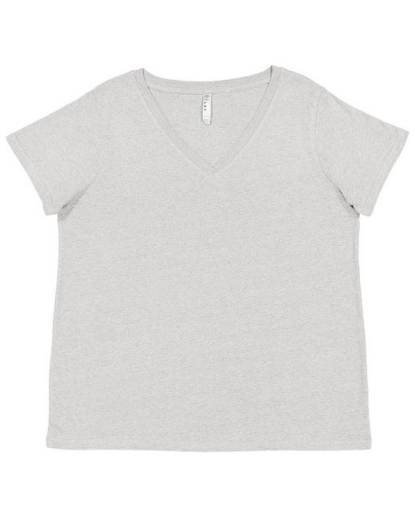 …combed ringspun cotton fine jersey; Ribbed v-neck topstitched collar; Self fabric back neck tape; Double-needle sleeves and bottom hem; Side seam construction; Easytearô tear away label; Ladies’ curvy, full-figured fit;…