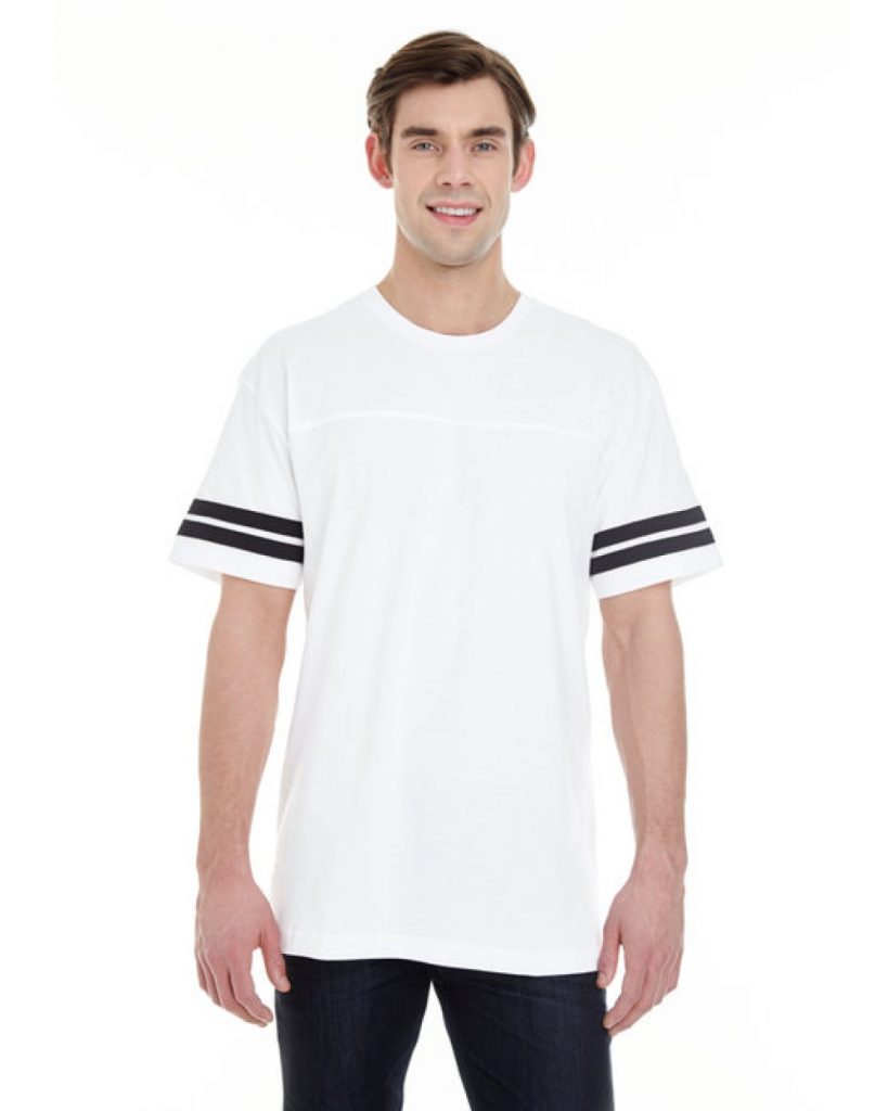 …sleeve stripes; Double needle sleeves and bottom hem; Side seam construction; EasyTearô label; Machine washable/ tumble dry low; Fit: Adult Unisex – True to Size; Note: Color descriptions indicate Body…